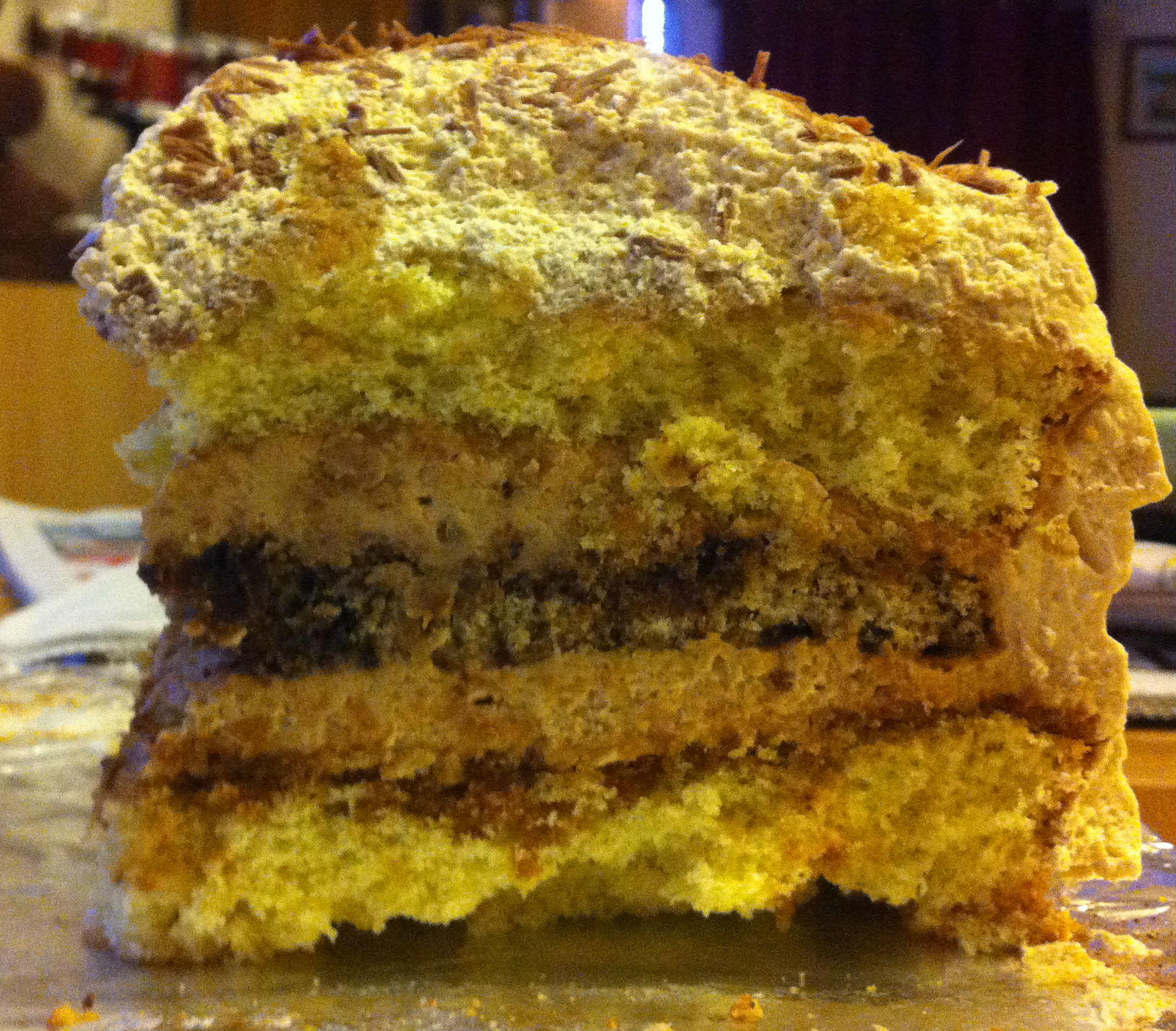 Next put the top layer on and sieve a little icing sugar or caster sugar on the top. You could decorate with more fruit on top or just one or two strawberries if you have any left over. Finally slice and enjoy! This cake only keeps for about 3 days.