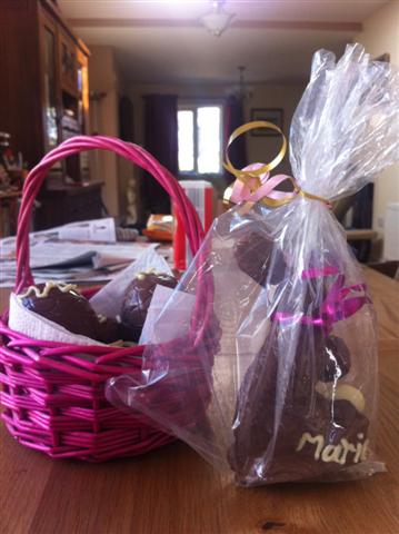 4 large eggs whisked together with 4 oz of caster sugar. This is whisked for about 5-6 minutes until is is creamy & thick. Next sift in 3 oz self-raising flour, 1 oz cocoa powder/drinking chocolate. Fold in the flour/cocoa and put into a 23cm round tin. The tin should be lined with parchment paper. It takes about 35 mins to bake in a fan oven at 180 degrees C.